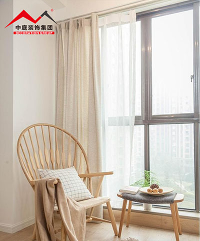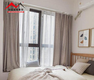 臥室,棉麻的窗簾加上半透明的窗簾,讓飄窗顯得很浪漫優雅,相信不少年輕女生們都很喜歡這樣的飄窗設計。