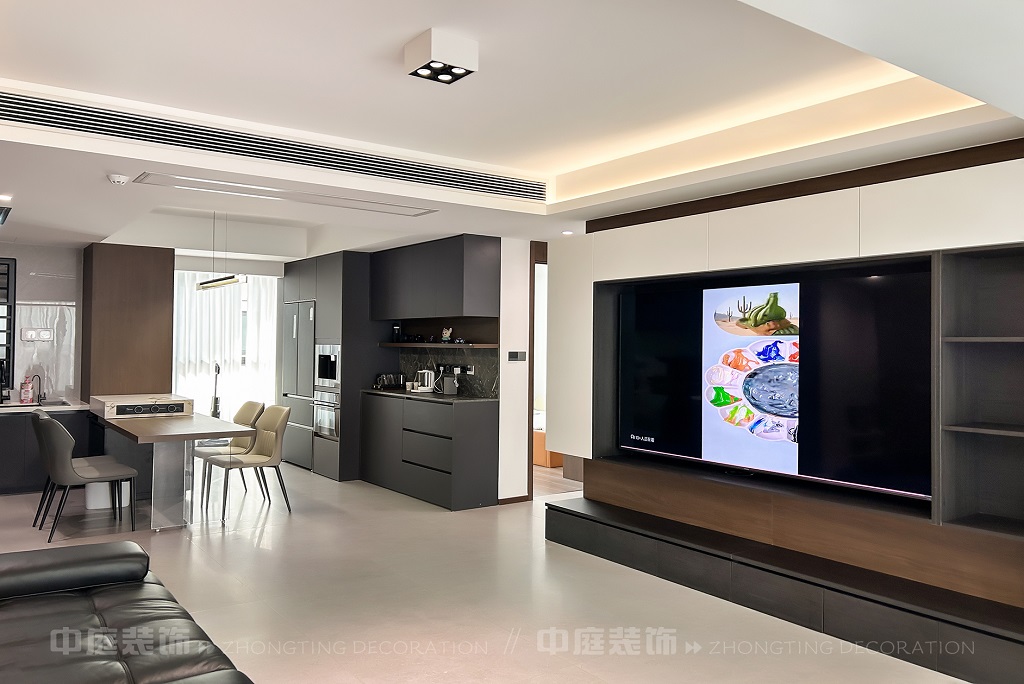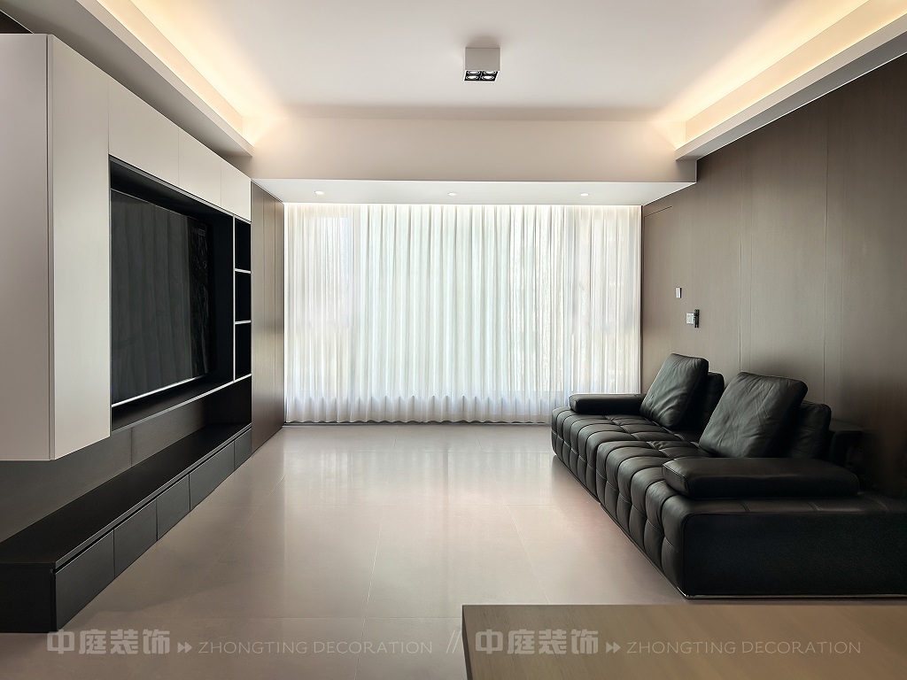 瀏覽量:29客廳以現(xiàn)代黑白灰極簡(jiǎn)風(fēng)格為核心,大面積白紗簾引入自然光線,黑色皮質(zhì)沙發(fā)質(zhì)感高級(jí)。開(kāi)放式布局,深灰櫥柜與木質(zhì)餐桌形成材質(zhì)對(duì)比,線性吊燈提升精致感,功能與美學(xué)兼具,營(yíng)造現(xiàn)代簡(jiǎn)約的烹飪用餐氛圍。輕柔窗簾與柔和燈光,打造靜謐休息空間。精致的材質(zhì)選擇與合理的功能規(guī)劃,詮釋了“少即是多”的現(xiàn)代簡(jiǎn)約居住美學(xué)。